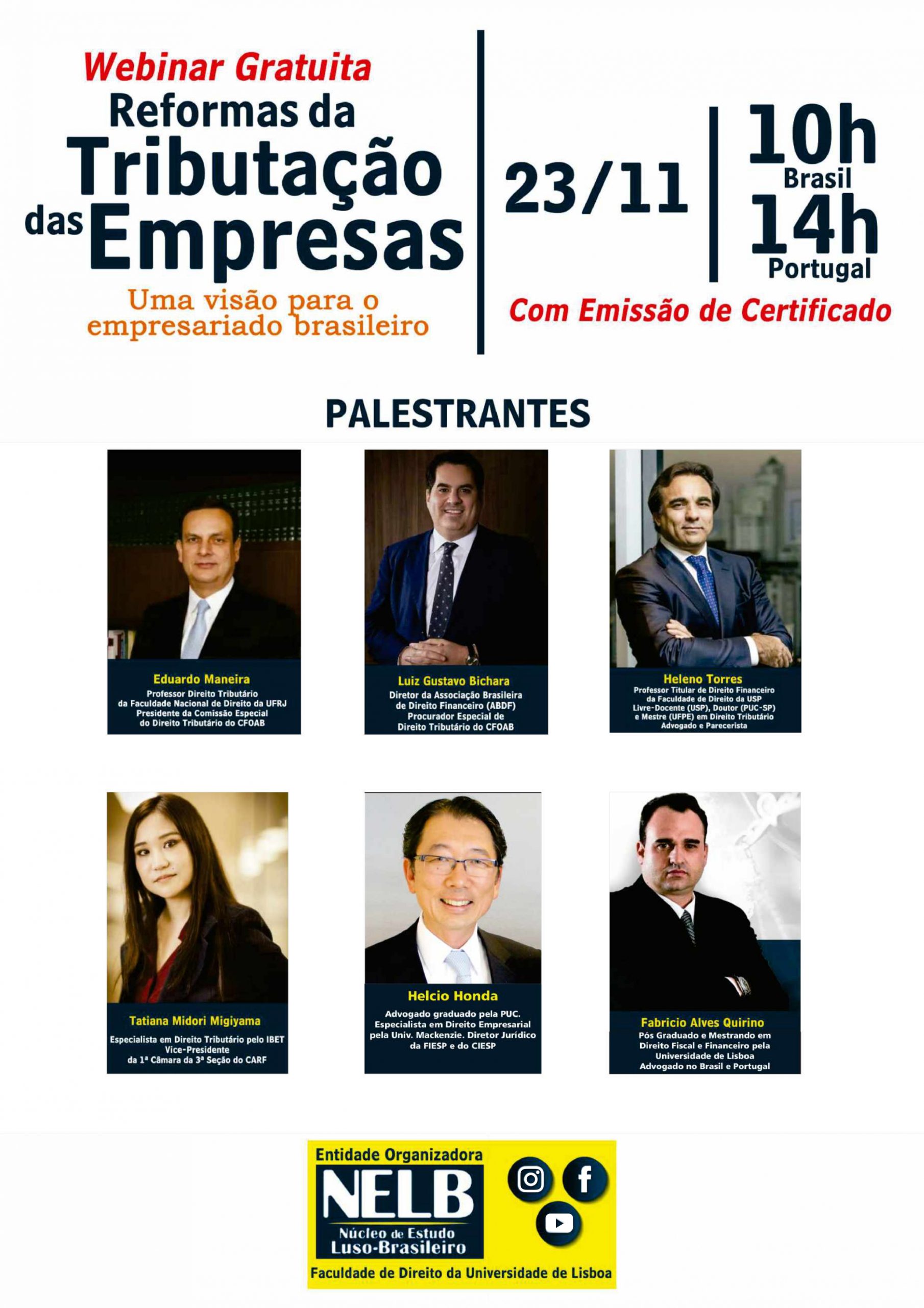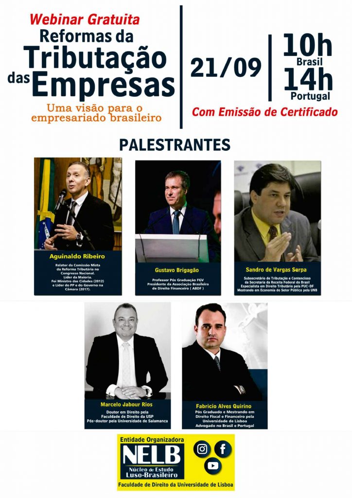 Ciclo de Palestras de Direto Tributário: A Reforma na Tributação das Empresas -NELB Faça sua inscrição no site do Nelb. + Adicionar ao Calendário do Google + Exportar para iCal Data 21 / set / 2020 - 23 / set / 2020 Expired! Horário 09:00 Categoria OUTROS