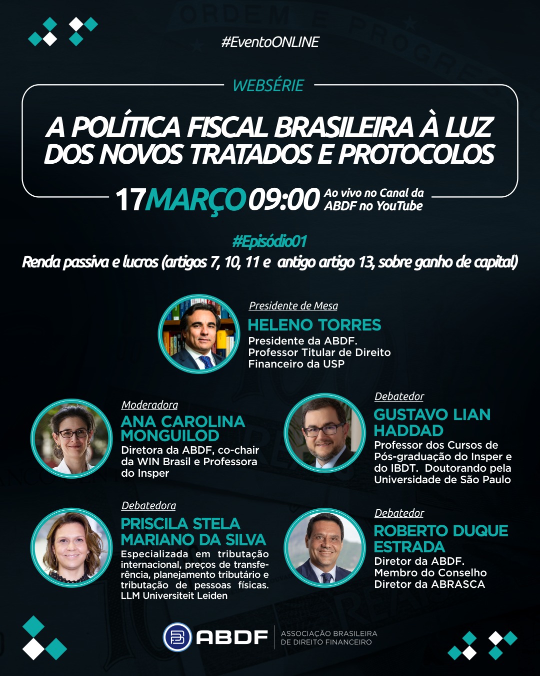 O episódio 1, intitulado “RENDA PASSIVA E LUCROS (ARTIGOS 7, 10, 11 E ANTIGO ARTIGO 13, SOBRE GANHO DE CAPITAL)” irá explorar os rumos da Política Fiscal Brasileira relativamente à sempre polêmica aplicação do art. 7º do Tratados à legislação brasileira de tributação dos lucros auferidos no exterior. Também serão analisados artigos específicos do Tratado que regulam a tributação de dividendos, juros e ganhos de capital.