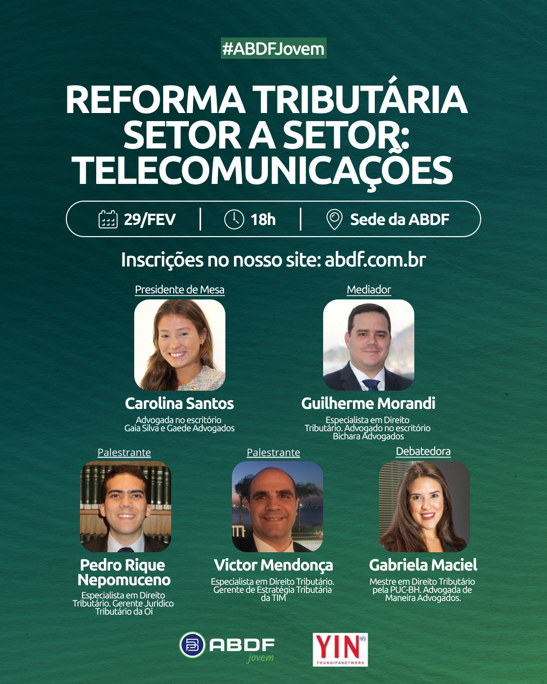 Participe do próximo evento da ABDF Jovem, que abordará o tema “A reforma tributária setor a setor: telecomunicações”.