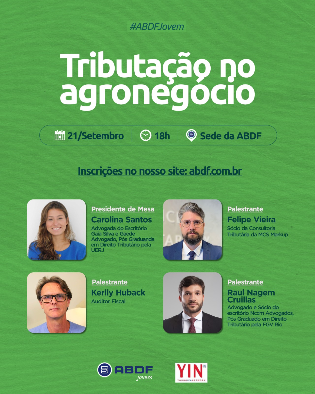 Participe do próximo evento ABDF Jovem, que abordará o tema “Tributação no Agronegócio”. Exploraremos questões atuais relacionadas ao custeio da Seguridade Social, incluindo o Funrural, os principais julgamentos nas Cortes Superiores sobre a contribuição substitutiva, a Lei do Bem para o agronegócio e os principais aspectos da proposta de reforma tributária no contexto do agronegócio.