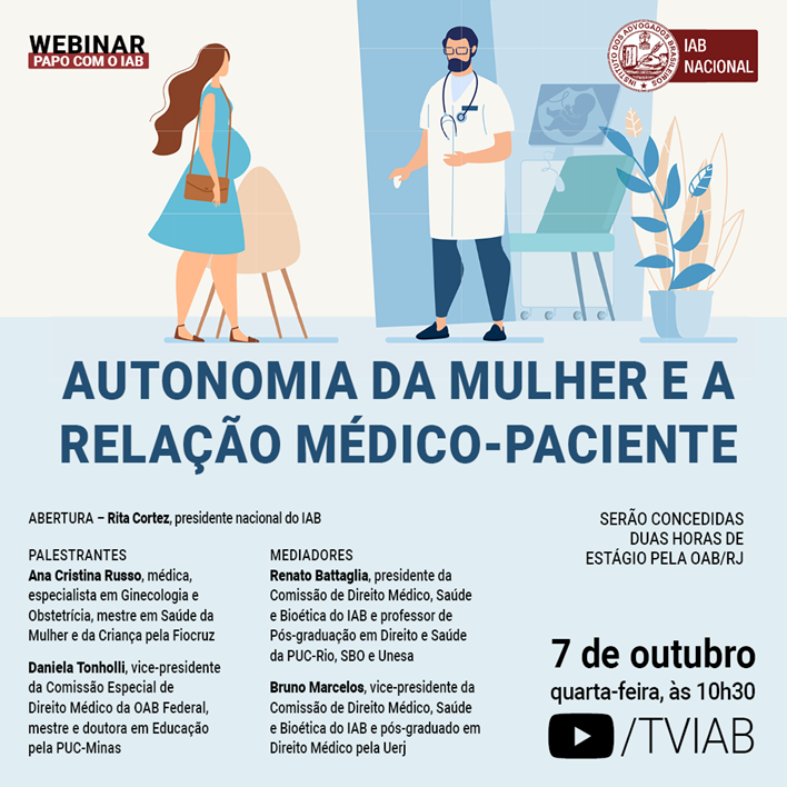 Autonomia da Mulher e a Relação Médico/Paciente – IAB Data: 7/10 Horário: 10:30h Assista no canal TV IAB. + Adicionar ao Calendário do Google + Exportar para iCal Data 07 / out / 2020 - 08 / out / 2020 Expired! Horário 10:30 Categoria OUTROS