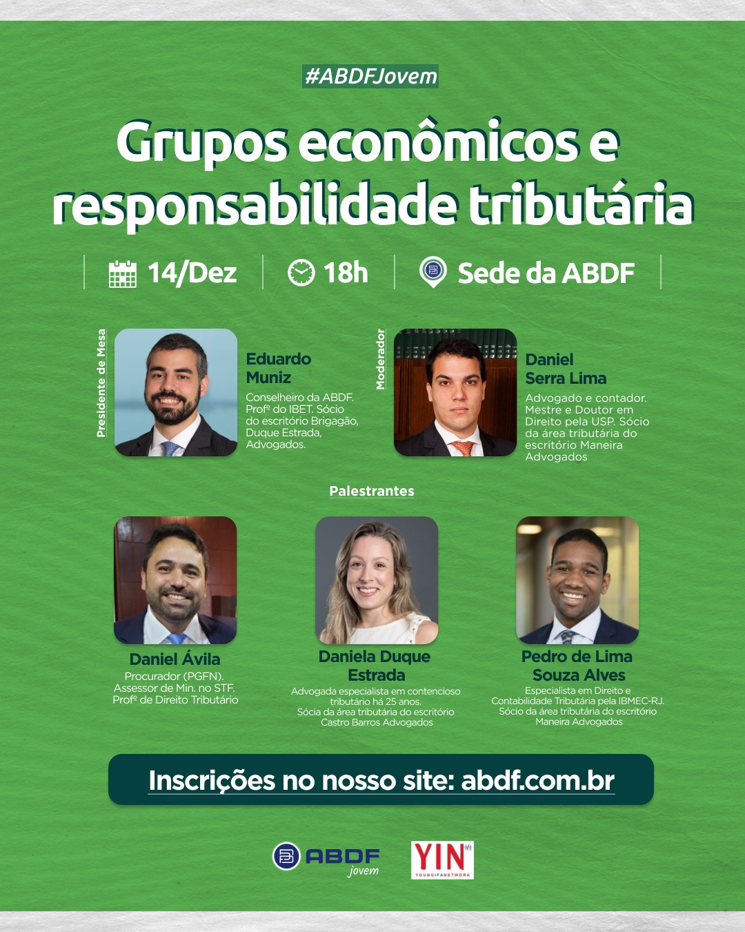 Participe do próximo evento da ABDF Jovem, que abordará o tema “Grupos econômicos e responsabilidade tributária”.