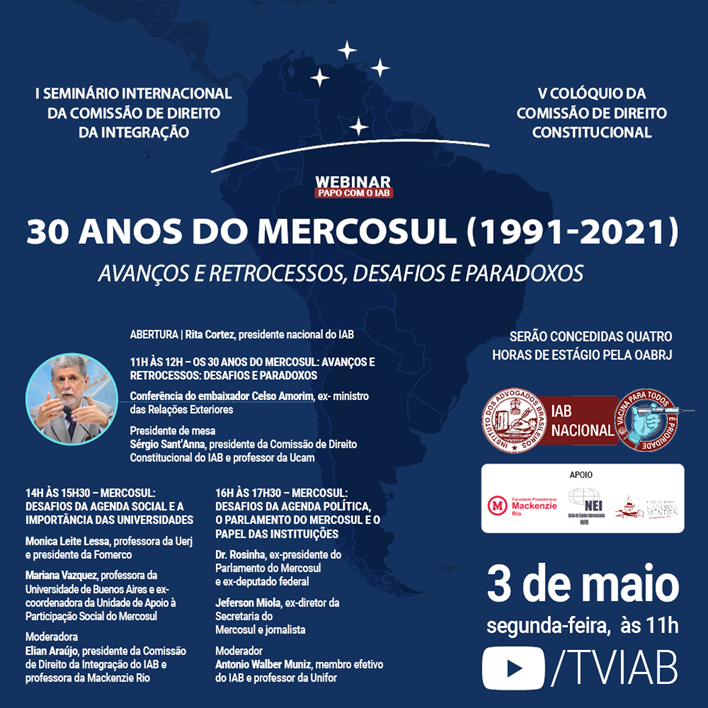 IAB – 30 anos do Mercosul (1991 – 2021) Avanços e retrocessos, desafios e Paradoxos
