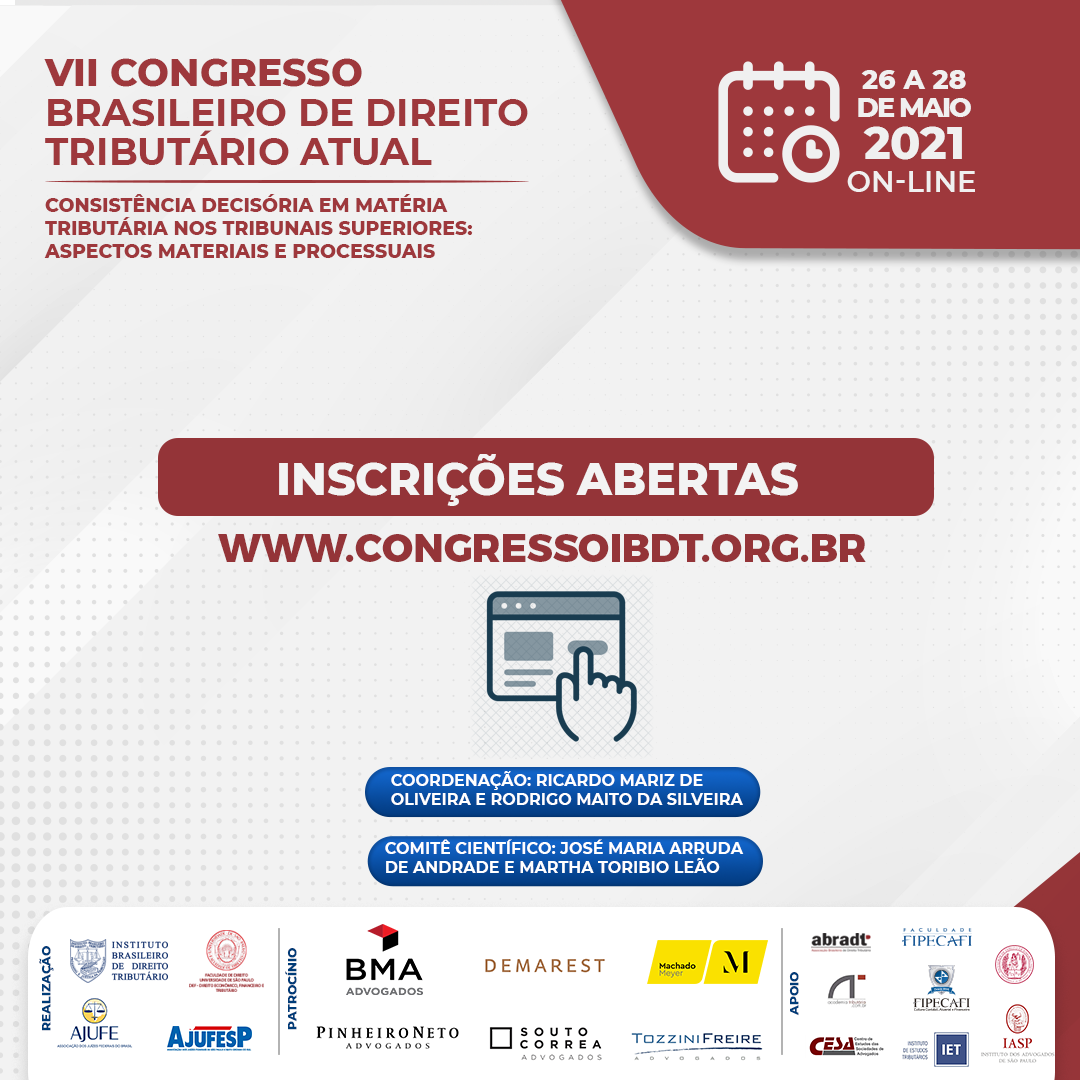 Inscrições abertas para o VII Congresso Brasileiro de Direito Tributário Atual do IBDT