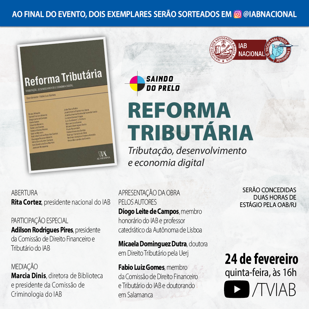 Webinar IAB – Reforma Tributária Data: 24 fevereiro, às 16h Assista na TV IAB. + Adicionar ao Calendário do Google + Exportar para iCal Data 24 / fev / 2022 Expired! Horário 16:00 Categoria OUTROS