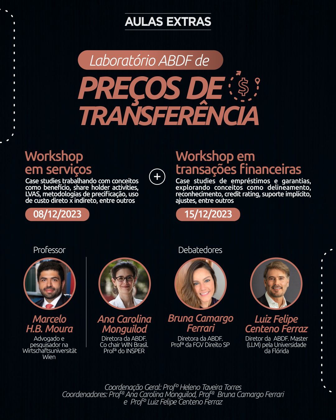 Workshops sobre serviços e transações financeiras – conteúdo exclusivo do Curso Laboratório ABDF de Preços de Transferência