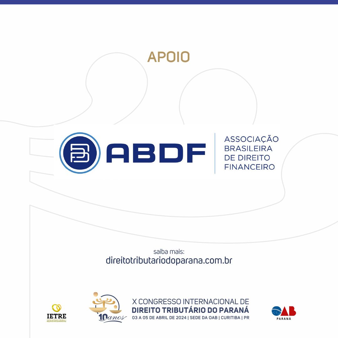 A ABDF apoia o X CONGRESSO INTERNACIONAL DE DIREITO TRIBUTÁRIO DO PARANÁ, realizado pelo Instituto de Estudos Tributários e Relações Econômicas Internacionais – IETRE, entre os dias 3 e 5 de abril em Curitiba, PR.