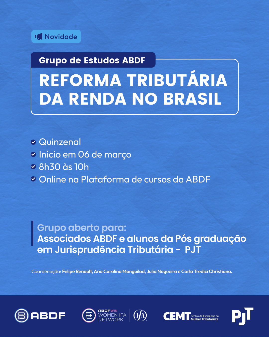Grupo exclusivo para associados ABDF e alunos da Pós graduação em Jurisprudência Tributária – PJT.